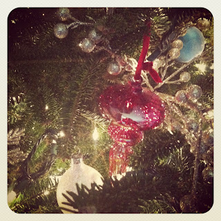 | Picked up this champagne glitter ornament at Walmart for $1 and added for sparkle... |